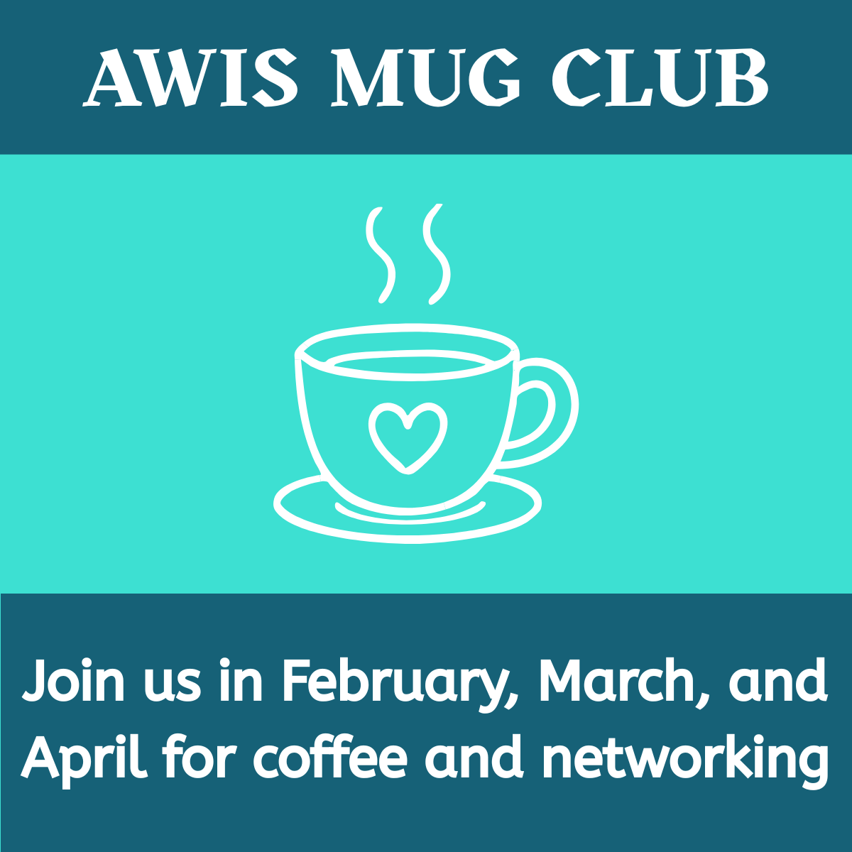 Join us in February, March, and April for coffee, conversation, and community. Come connect with fellow AWIS members!